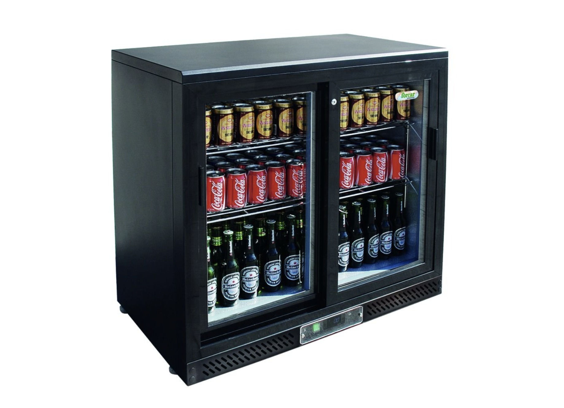 UNDERCOUNTER FRIDGE - PAINTED STEEL/ALUMINIUM EXTERIOR - FOR BEVERAGES - Mod. G-BC2PS87 - VENTILATED COOLING - CAPACITY Lt 202 - N. 2 SLIDING GLASS DOORS - TEMPERATURE RANGE +2°/+8°C - Dimensions cm L90 x D53,5 x h87 - CE APPROVED