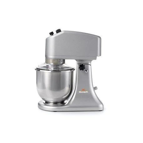 Metal-cast planetary mixer. Liftable head for bowl and tool removal and easy cleaning. Removable, S/S, 7L bowl. D.C. motor with speed control. Gear drive and grease lubrication. Safety microswitch on the head. NVR device. Suitable for soft dough; for medium dough (for example, bread), it is advisable to use max. 1 kg of flour. NOT suitable for tough mixes.(for ex. taralli).